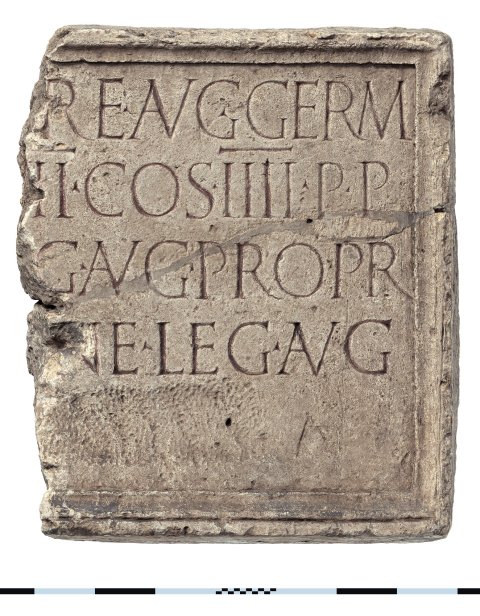 Ti(berio) Claudio Ca[esa]re Aug(usto) Germ(anico) [---] / imp(eratore) XII p(ontifice) m(aximo) tr(ibunicia) po[(estate) V]II co(n)s(ule) IIII p(atre) p(atriae) / [--- le]g(ato) Aug(usti) pro pr(aetore) / M(arco) Lic[inio Senecio]ne leg(ato) Aug(usti) / leg(io) [[XXI R]a[p]a[x]] //