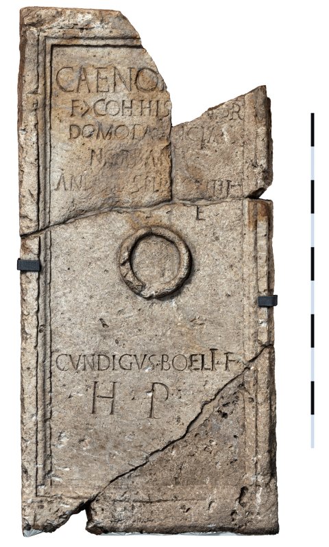 - Caeno [---] f(ilius) |(centurio) coh(ortis) His[pa]nor(um) domo Tancia Norbana ann(orum) XL stip(endiorum) XVIIII h(ic) s(itus) e(st) Cundigus Boeli f(ilius) h(eres) p(osuit)