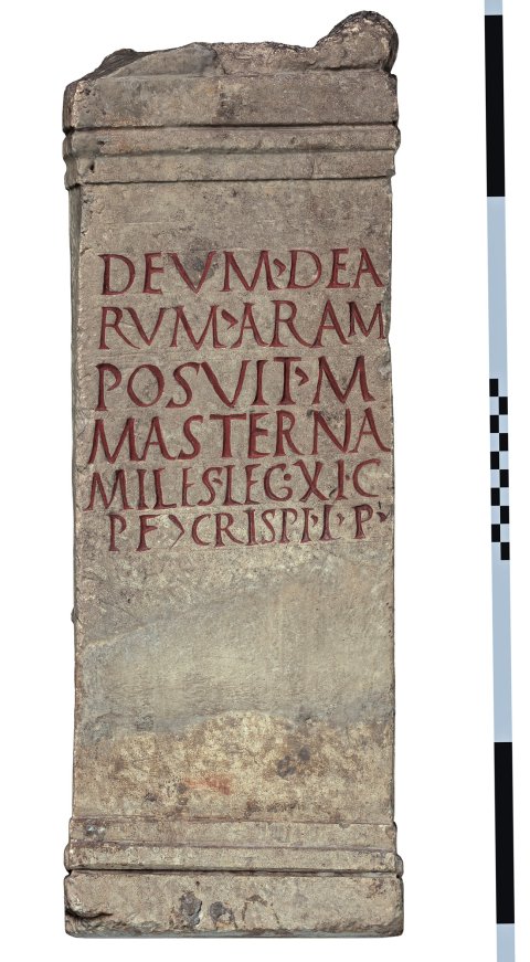 - Deum dea/rum aram / posuit M(arcus) / Masterna / miles leg(ionis) XI C(laudiae) / P(iae) F(elicis) (centuria) Crispi I() P()