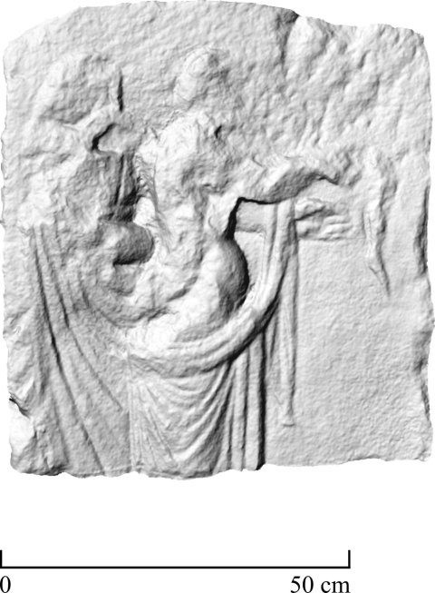 - unt. Drittel abgebr., Rahmen abgemeißelt, Relief abgesplittert