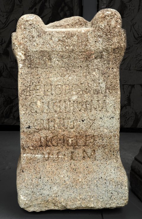 - I(ovi) O(ptimo) M(aximo) / Heliopolitan(o) / Q(uintus) Licinius Ma/crinus (centurio) / leg(ionis) IIII F(laviae) f(elicis) / v(otum) s(olvit) l(ibens) m(erito)