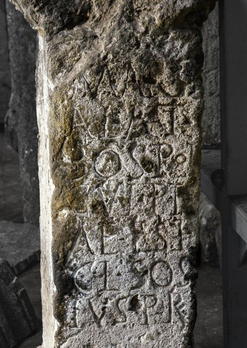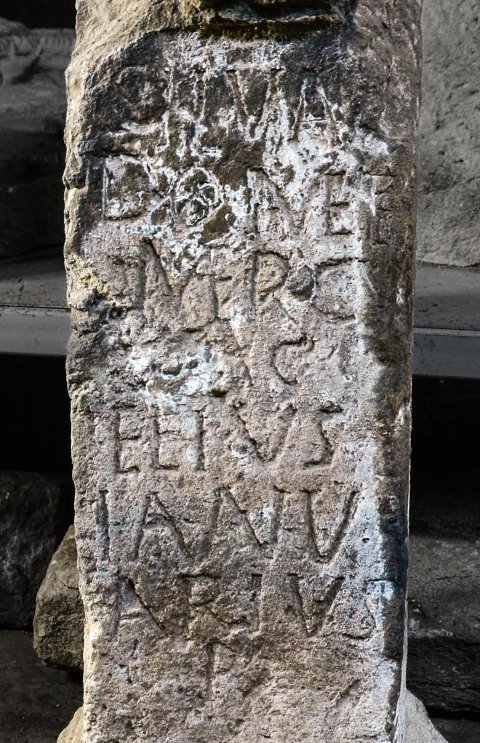 - Marti / Ala I / Bospor(anorum) / cui pr/aeest / Cl(audius) Sos/sius pr(aefectus) // Silvan(o) / Dom(estico) et / Mercu(rio) / sac(rum) / (A)elius / Ianu/arius / p(osuit)