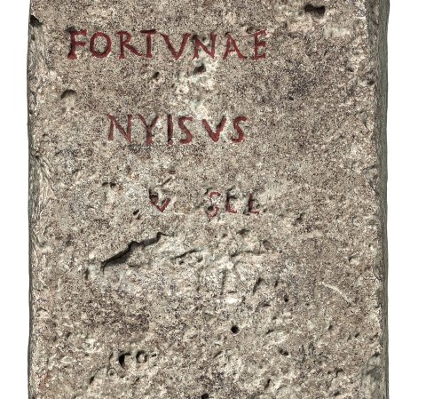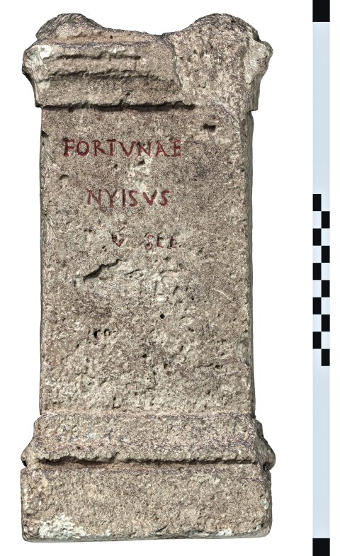 - Fortunae / Nyisus / P(ubli) ser(vus) / [v(otum) s(olvit)] l(ibens) l(aetus) m(erito)