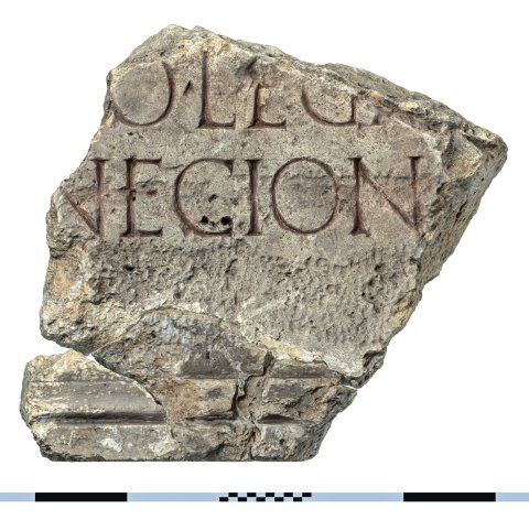 - [Ti(berio) Claudio Caesare Aug(usto) Germ(anico)] / [imp(eratore) XII p(ontifice) m(aximo) tr(ibunicia) pot(estate) VII co(n)s(ule) IIII p(atre) p(atriae)] / [Q(uinto) Curtio Ruf]o leg(ato) A[ug(usti) pro pr(aetore)] / [M(arco) Licinio Se]necion[e leg(ato) Aug(usti)] / [legio ⟦XXI Rapax⟧]