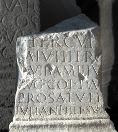 - Hercul[i] / [s]alutifero / Q(uintus) Vib(ius) Amillu[s] / Aug(ustalis) col(oniae) Dac(icae) / pro salute / Iuliani fili sui
