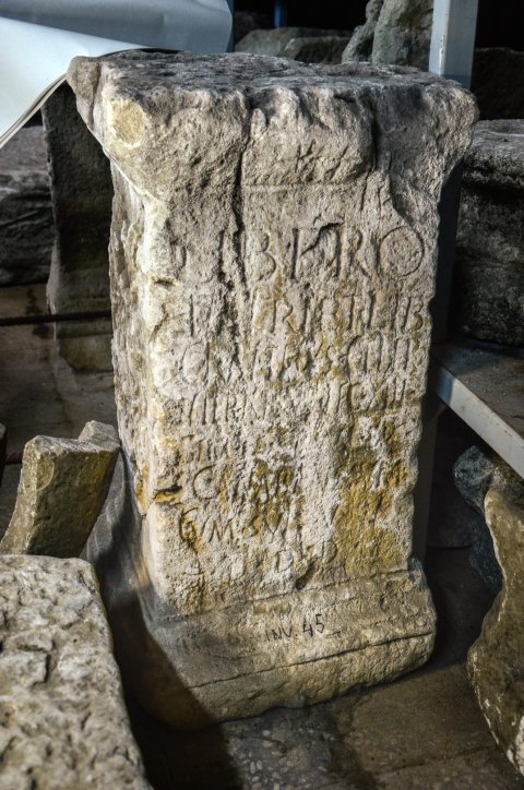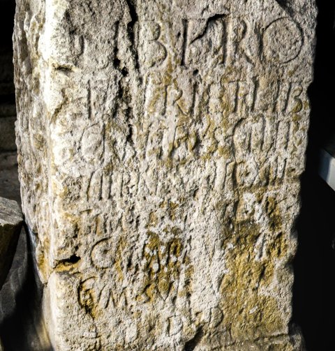 - Libero / Patri et Libe(rae) / Cl(audius) Atteius Celer / veteranus leg(ionis) XIII / gem(inae) I[---]NI(?) d[e]c(urio) / canabensium / cum suis v(otum) l(ibens) s(olvit) / l(oco) d(ato) d(ecurionum) d(ecreto)