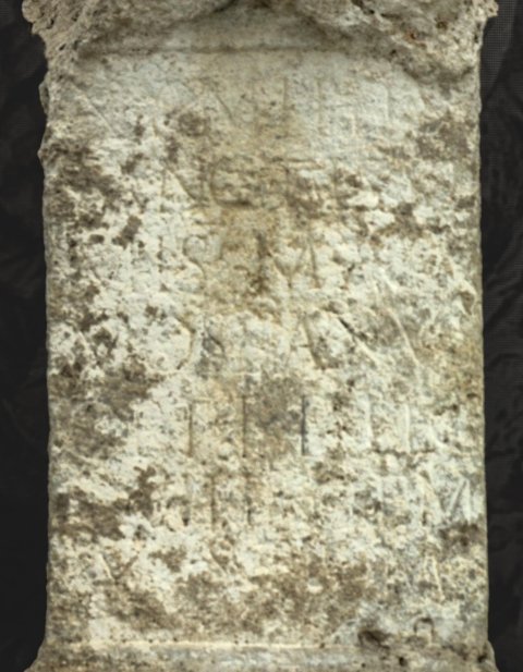 - Nymphis / sanctissi/mis M(arcus) Aur(elius) / Mosianus / opti(o) I leg(ionis) / XIII gem(inae) / v(otum) s(olvit) l(ibens) m(erito)