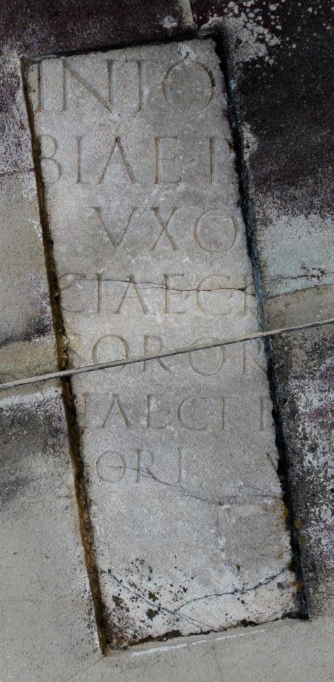 - [C(aius) Pris]ciu[s C(ai) f(ilius)] / [Cla(udia) S]tatu[tus] / [si]bi e[t] / [P(ublio) Prisci]o C(ai) f(ilio) V[ere]/[cundo] frat[ri et Q(uinto)] / [Prisc(io) C(ai)] f(ilio) Prisc[iano] / [frat]ri [et] / [Prisci(i)s] Venus[tinae] / [et Qu]into [fili(i)s] / [et Bar]biae P(ubli) [f(iliae) Ve]/[nustae] uxo[ri] / [et Pris]ciae C(ai) f(iliae) [Primae] / soror[i] / [et Prisc]iae C(ai) f(iliae) I[antul]/[lae so]rori v[ivis]