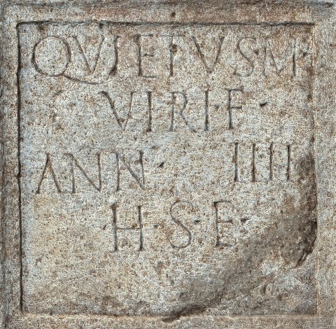 - Quietus M(arci) / Viri f(ilius) / ann(orum) IIII / h(ic) s(itus) e(st)