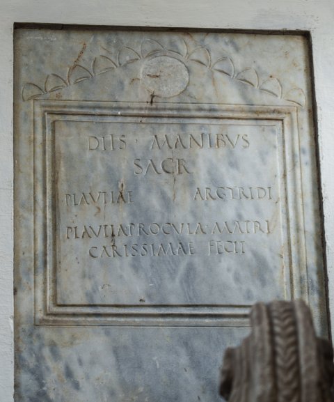 - Di{i}s Manibus / sacr(um) / Plautiae Argyridi / Plautia Procula matri / carissimae fecit