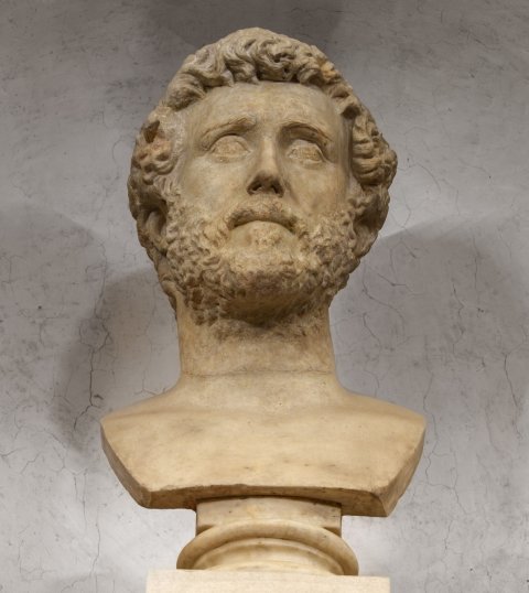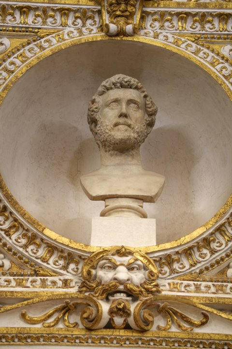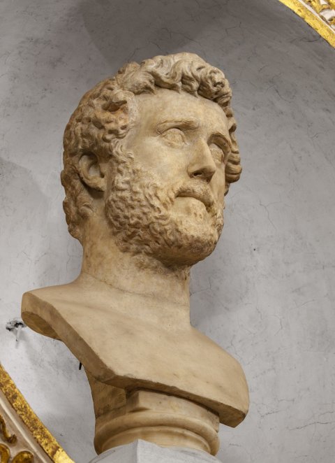 - leicht bestoßen, Bruch durch Hals, Nase u. Büste ergänzt