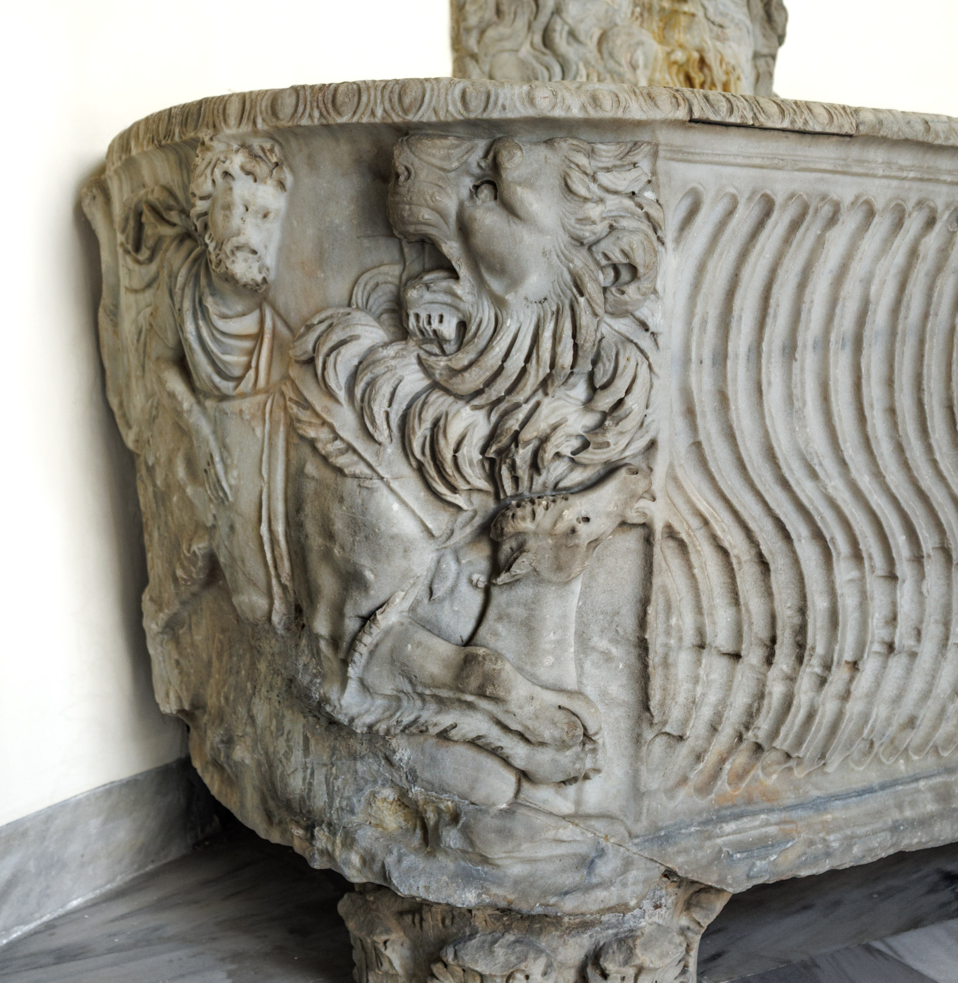 35698 Riefelsarkophag mit Löwen