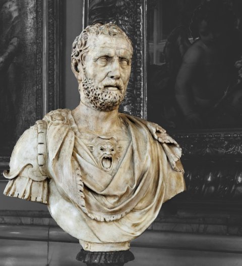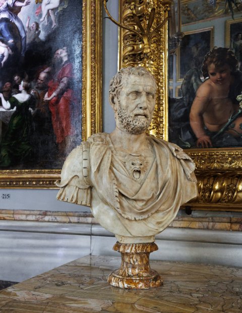 - Bruch unterhalb des Kinns, Nase, Hals und Büste ergänzt