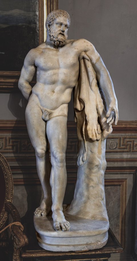 - Mythische Figur: auf die Keule gestützter ausruhender Hercules, Typus Farnese. Nachbildung nach einer Statue des Lysipp, 4. Jh. v. Chr.
