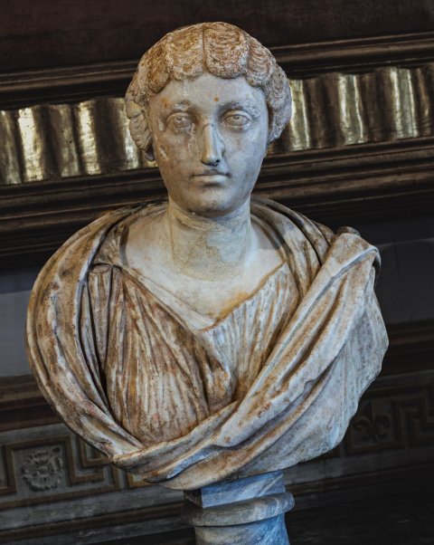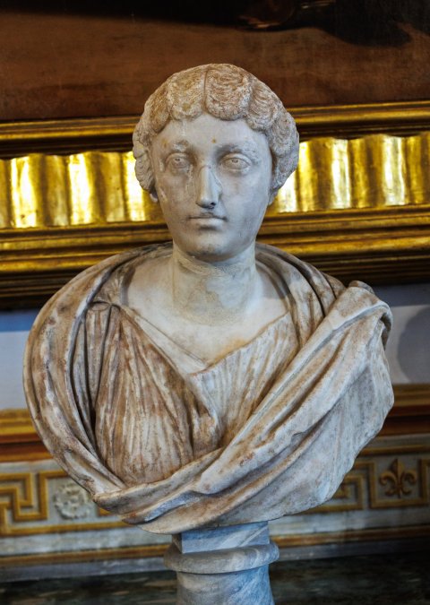 - Porträt einer jungen Frau mit Frisur der Faustina Minor