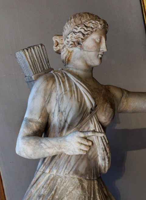 - Mythische Figur: Bogenspannende Artemis - Diana, nach rechts bewegt, in kurzem Chiton mit Überschlag.