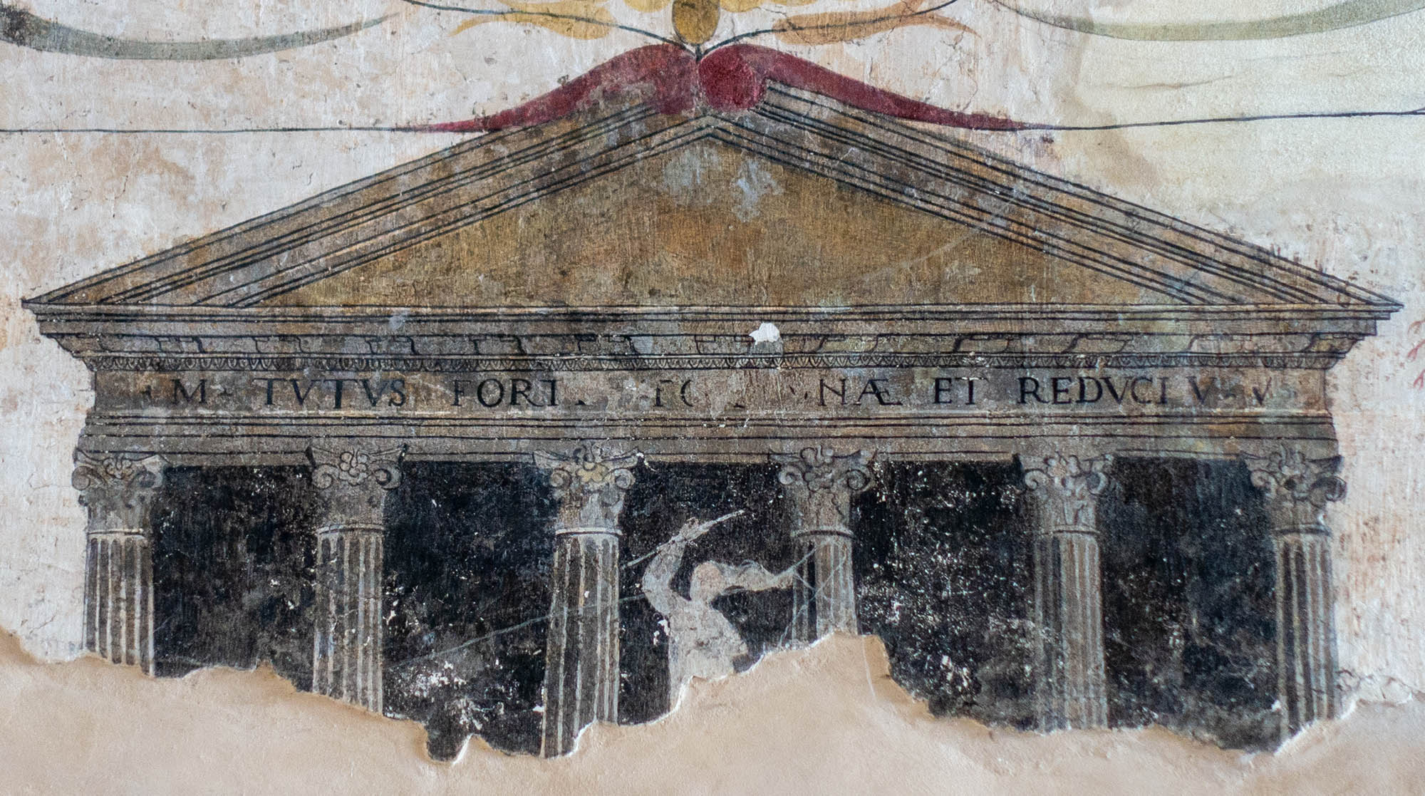 © Ubi Erat Lupa Malerei im gegenüberliegenden Hauseingang von 1556, Foto: Paul Victor Bayer 2025 April