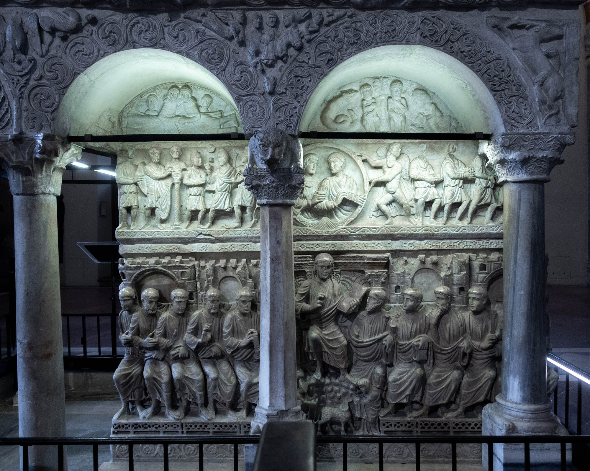 Bilder 1-9 gegen den Uhrzeigersinn um den Sarkophag aufgenommen, 2. Langseite weitgehend verdeckt.