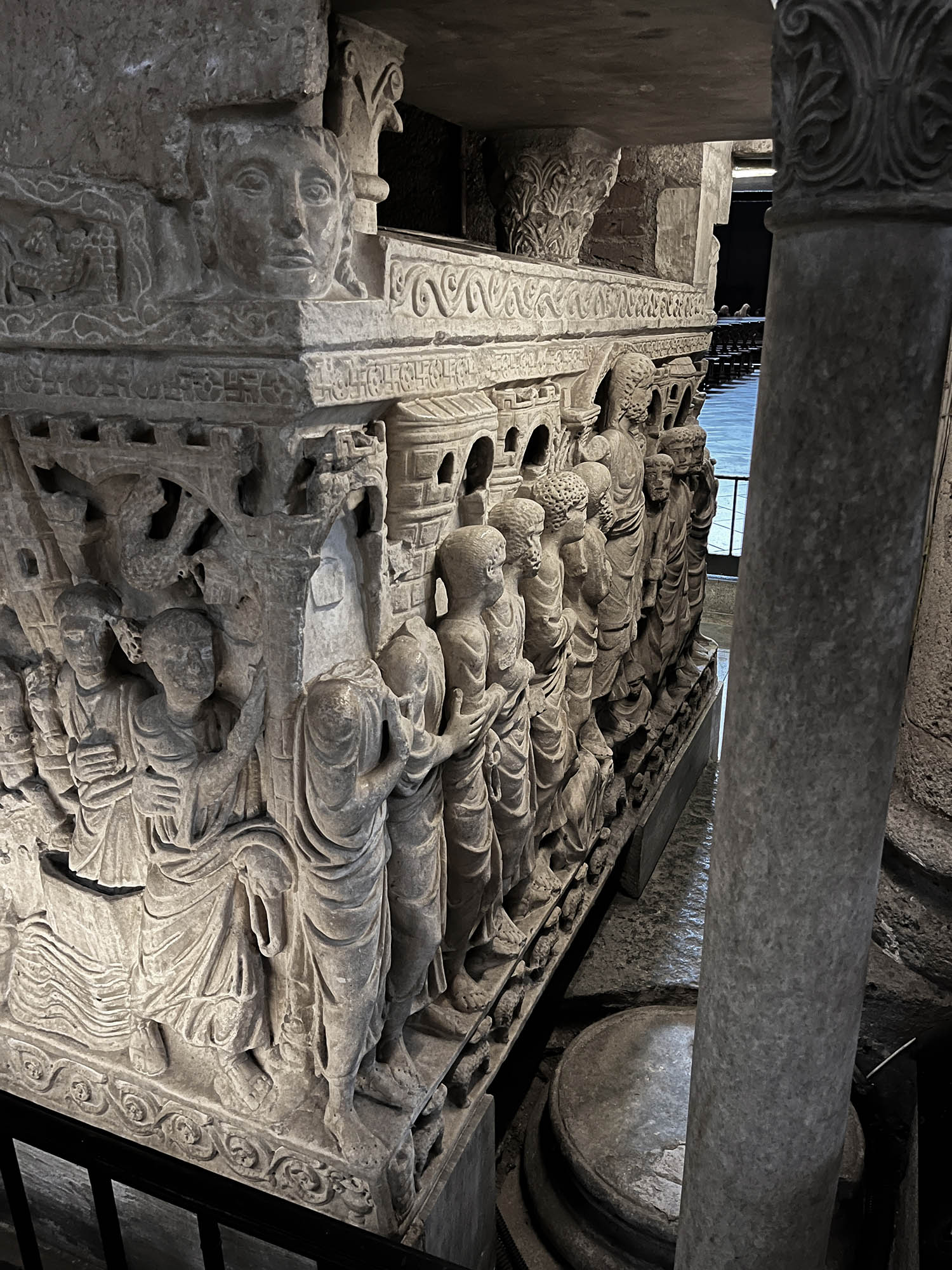 Bilder sind gegen den Uhrzeigersinn um den Sarkophag aufgenommen.