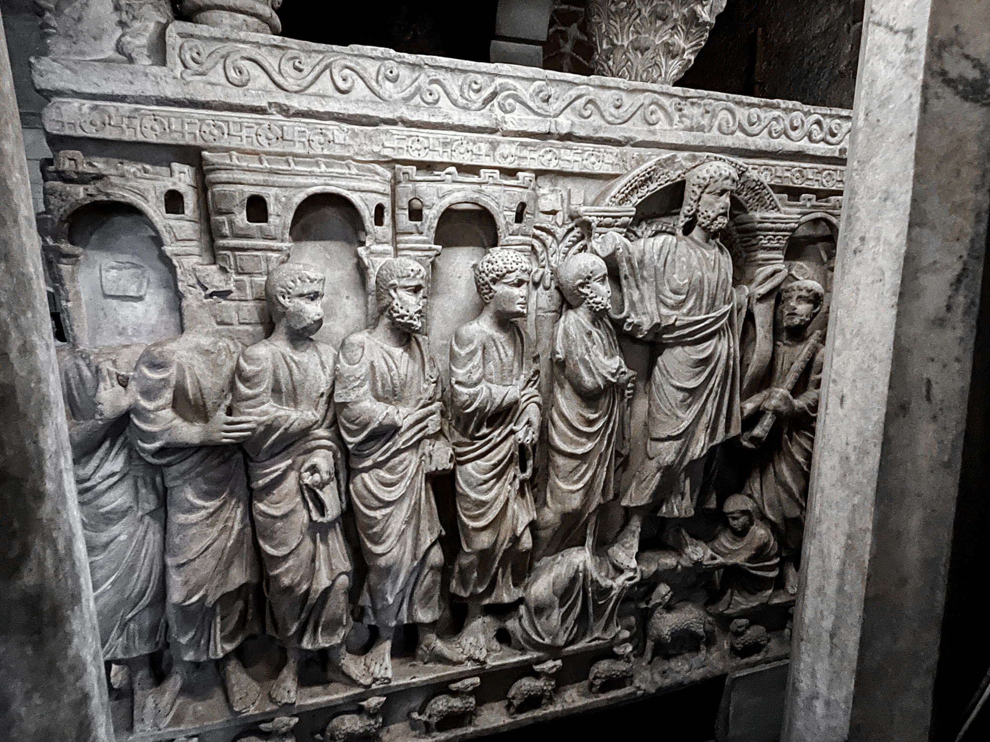 Bilder sind gegen den Uhrzeigersinn um den Sarkophag aufgenommen.