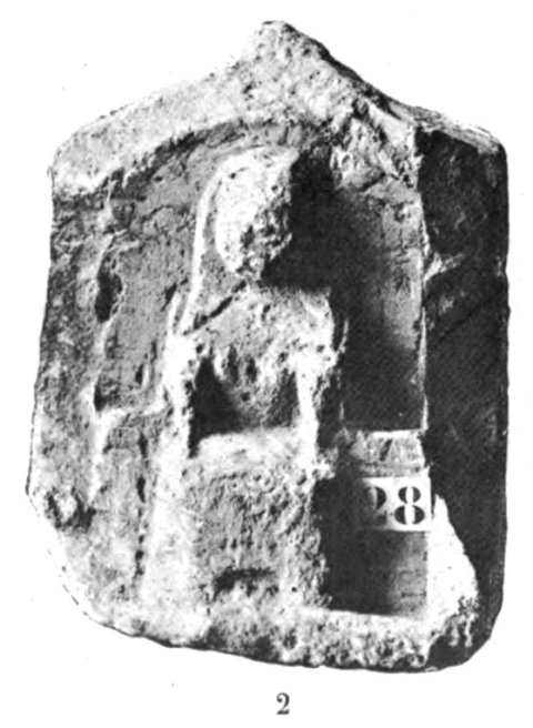 - bestoßen, Giebel und linke Seite z. T. abgebrochen