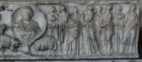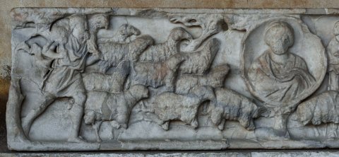 35818 Sarkophag mit Porträtmedaillon und Schafherde