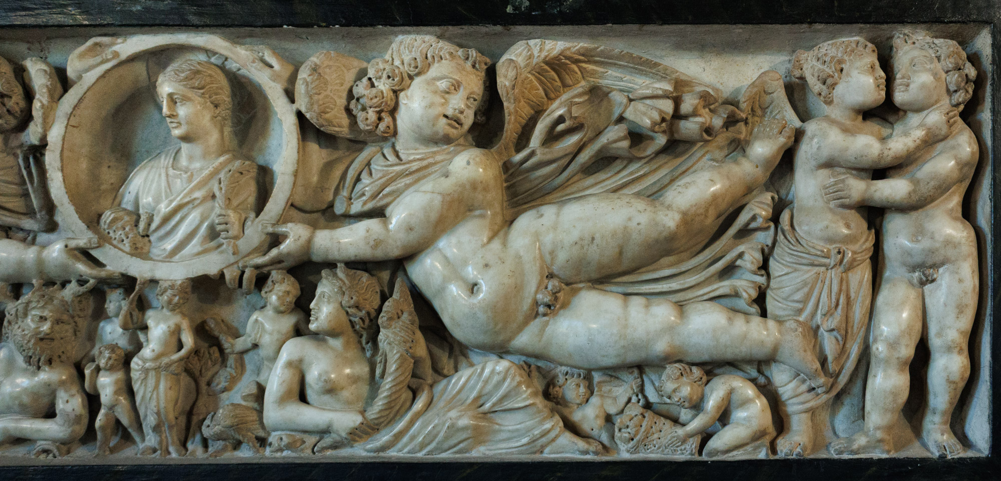 35893 Sarkophag mit Porträtmedaillon einer Frau