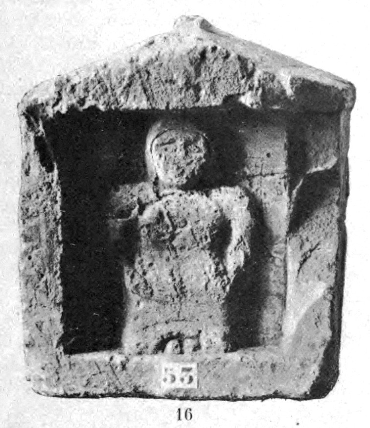 35989 Votivaedicula mit sitzender weiblicher Figur