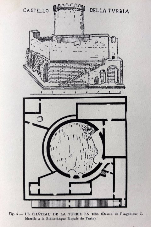 Im Mittelalter zu Wachtturm umgebaut. Im Zuge des spanischen Erbfolgekrieges 1705 durch Sprengungen erheblich beschädigt. - Maße