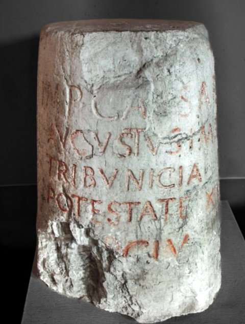 - Imp(erator) Ca[es]ar / Augustus imp(erator) X / tribunicia / potestate XI / [D]CIV