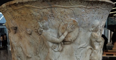 - im Mittelalter in einer römischen Villa gefunden, dann in Gaeta als Poller zum Anhängen von Fischerbooten, später in der Kathdrale als Taufbecken; seit 1805 im Museum