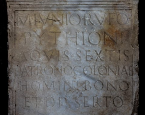 - M(arco) Iunio Rufo / Pythioni / Aquis Sextis / patrono coloniae / homini bono / et disserto