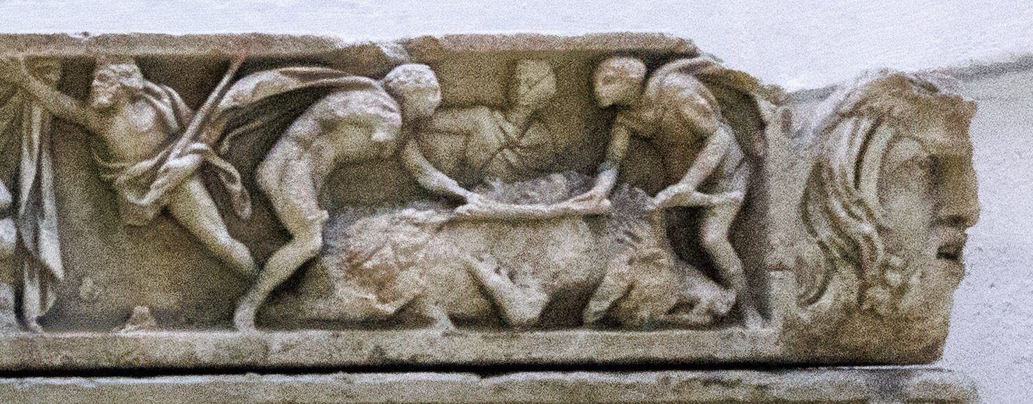 36079 Riefelsarkophag mit Deckelrelief