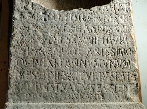 D(is) M(anibus) // et pe[rpetuae sec]uritati / Burill(a)e fili(a)e carissi/mae quae vixit annis VIII / me(nse)s V dies XXVIII et Buri/niano filio carissimo /