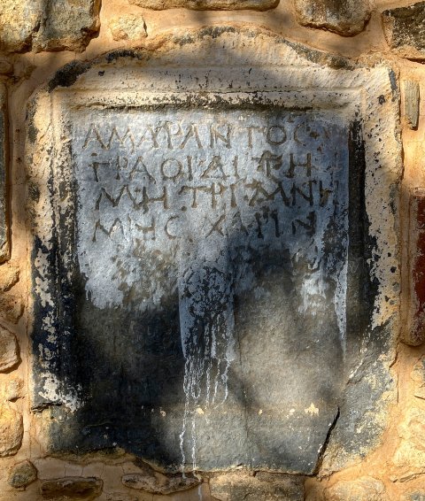 - griechisch: Ἀμάραντος / Γραοιδὶ τῇ / μητρὶ μνή/μης χάριν