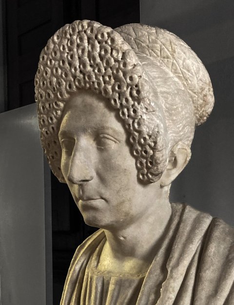 - bekleidete Büste einer Frau mit flavischer Frisur