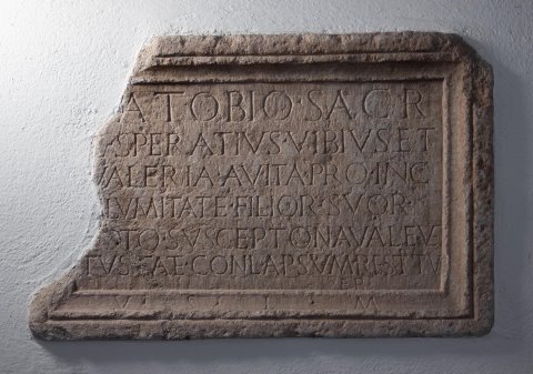 - [L]atobio sacr(um) / C(aius) Speratius Vibius et / Valeria Avita pro inc/olumitate filior(um) suor(um) / voto suscepto navale ve/tustate conlapsum restitu/er(unt) // v(otum) s(olventes) l(ibentes) m(erito)