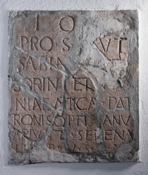- I(ovi) O(ptimo) [M(aximo)] / pro s[al]ut[e] / Sabin[i Cen]/sorini et Lic[i]/niae Atticae pat/ronis opti(mis) Ianu/arius et Serena / lib[e]r(ti) v(otum) s(olverunt) [l(ibentes)] m(erito)