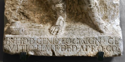 - In h(onorem) d(omus) d(ivinae) Genio loci signum Cl(audius) / Vitio l(ibens) l(aetus) m(erito) f(ecit) ded(icavit) Apro co(n)s(ule)